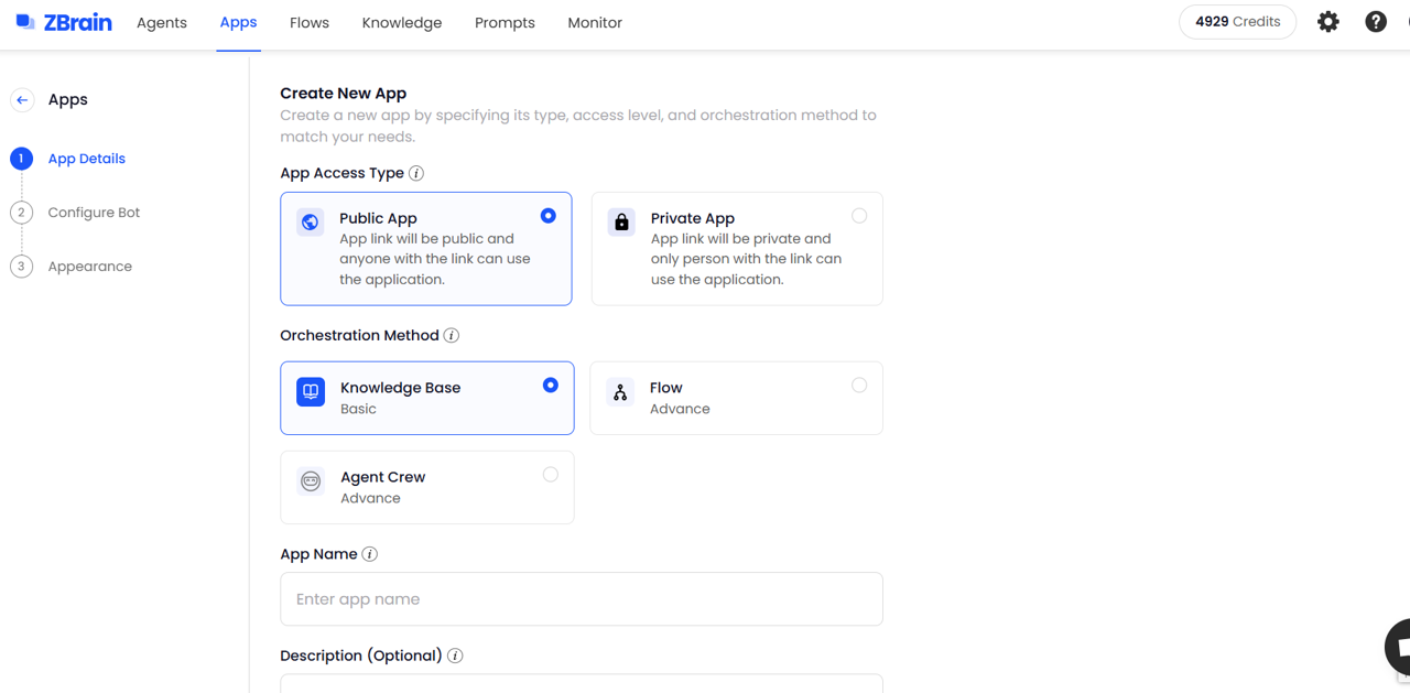 Quick tutorial with steps to create an app on ZBrain
