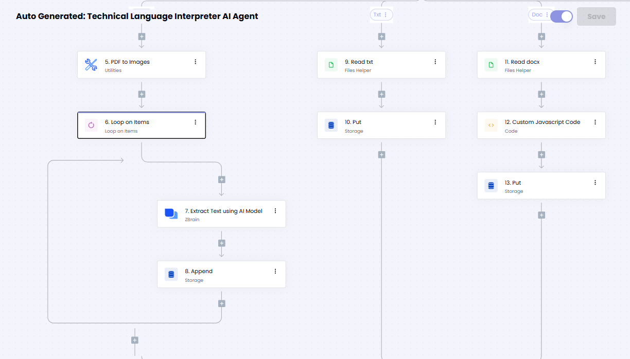 Suppose you have a PDF containing with technical diagrams and want to automatically extract the text from each page without manual effort. The Loop on Items component makes this possible by processing each page in a repeatable and automated manner.