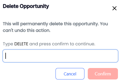 * Select ‘Delete’ and a confirmation pop-up will appear.