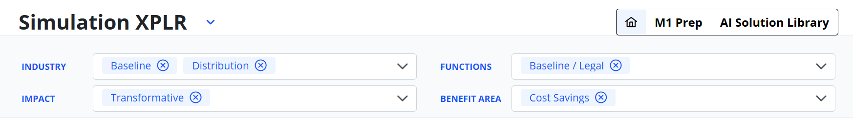 Industry XPLR uses several filter dimensions to contextualize simulation results. These filters include: