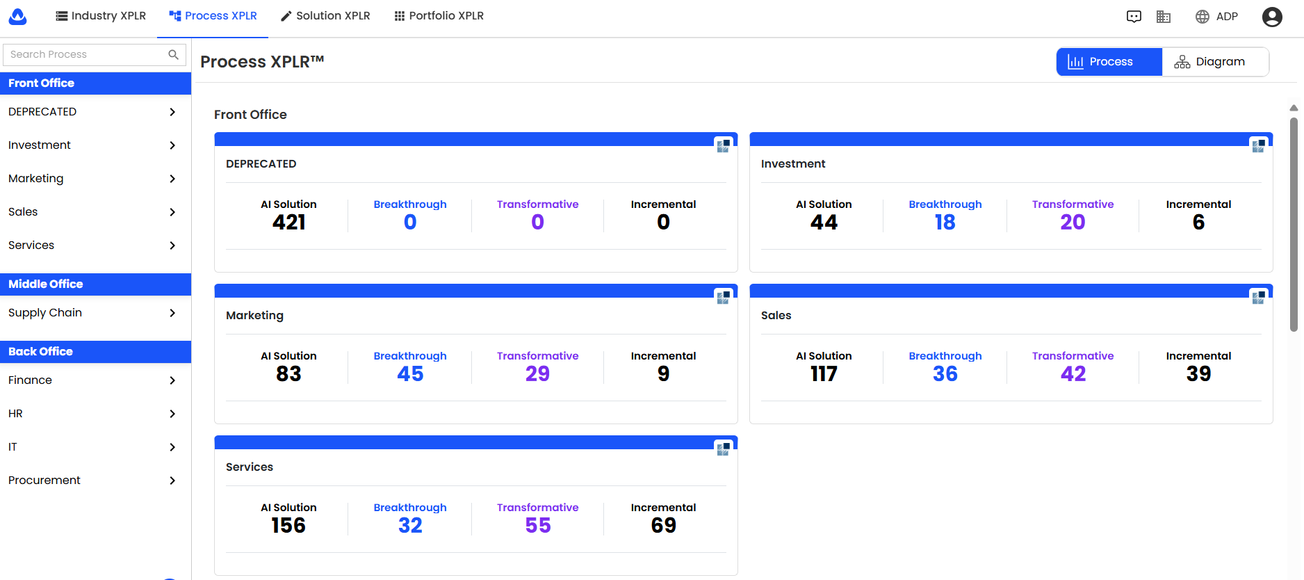 The Opportunities tab has been fully removed from Process XPLR.
