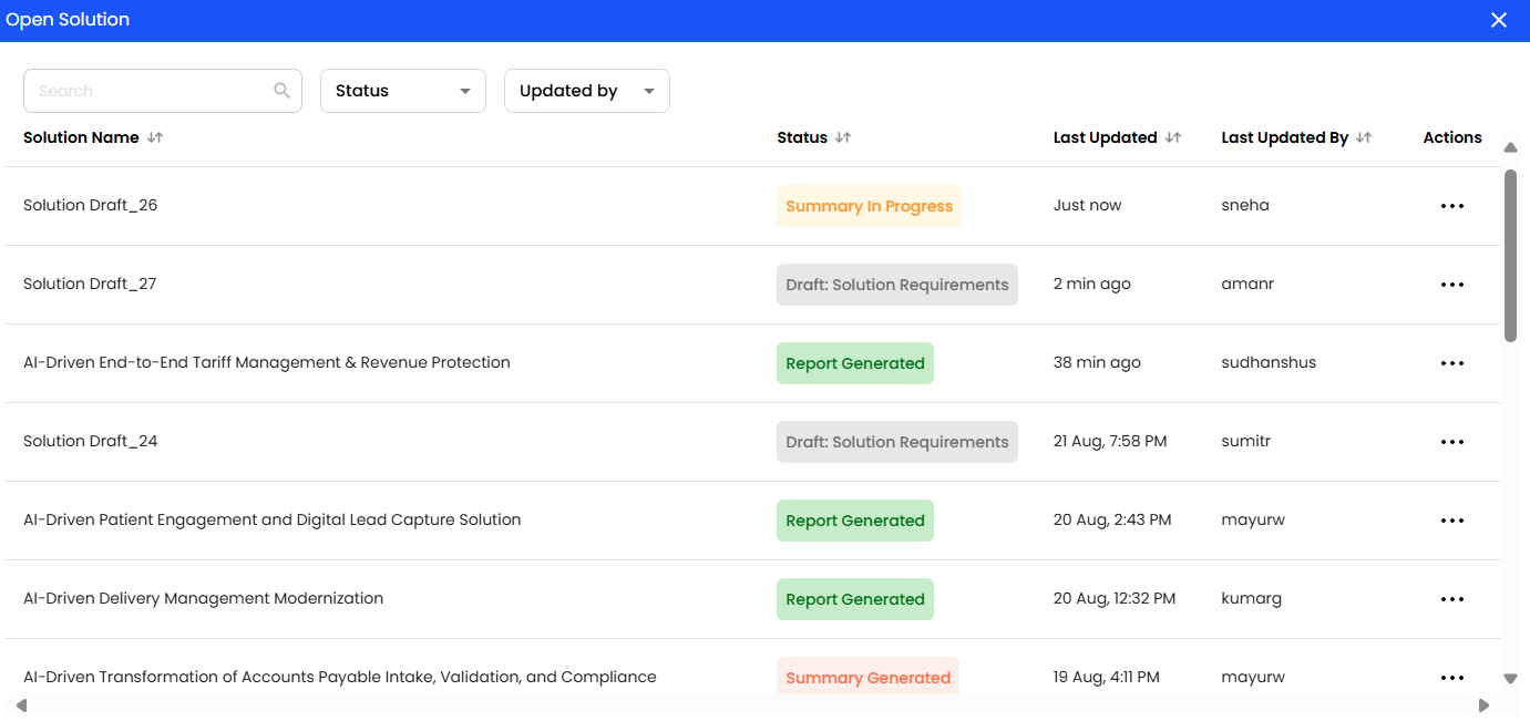 Ensured timestamps (Last Updated) now refresh correctly in solution drafts and reports.